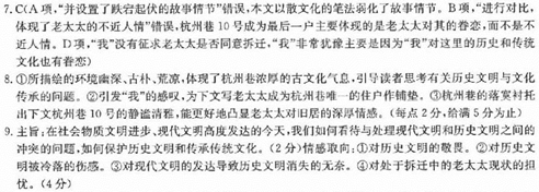 8.小说第二自然段对杭州巷的环境进行了描写,这有什么作用?请简要分析。(5分)